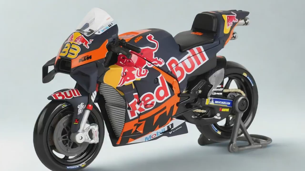 Experience the thrill of the track with this highly detailed 1:18 scale replica of the 2023 GP Racing Red Bull KTM. Perfect for collectors seeking authenticity, realistic movement, and premium craftsmanship.